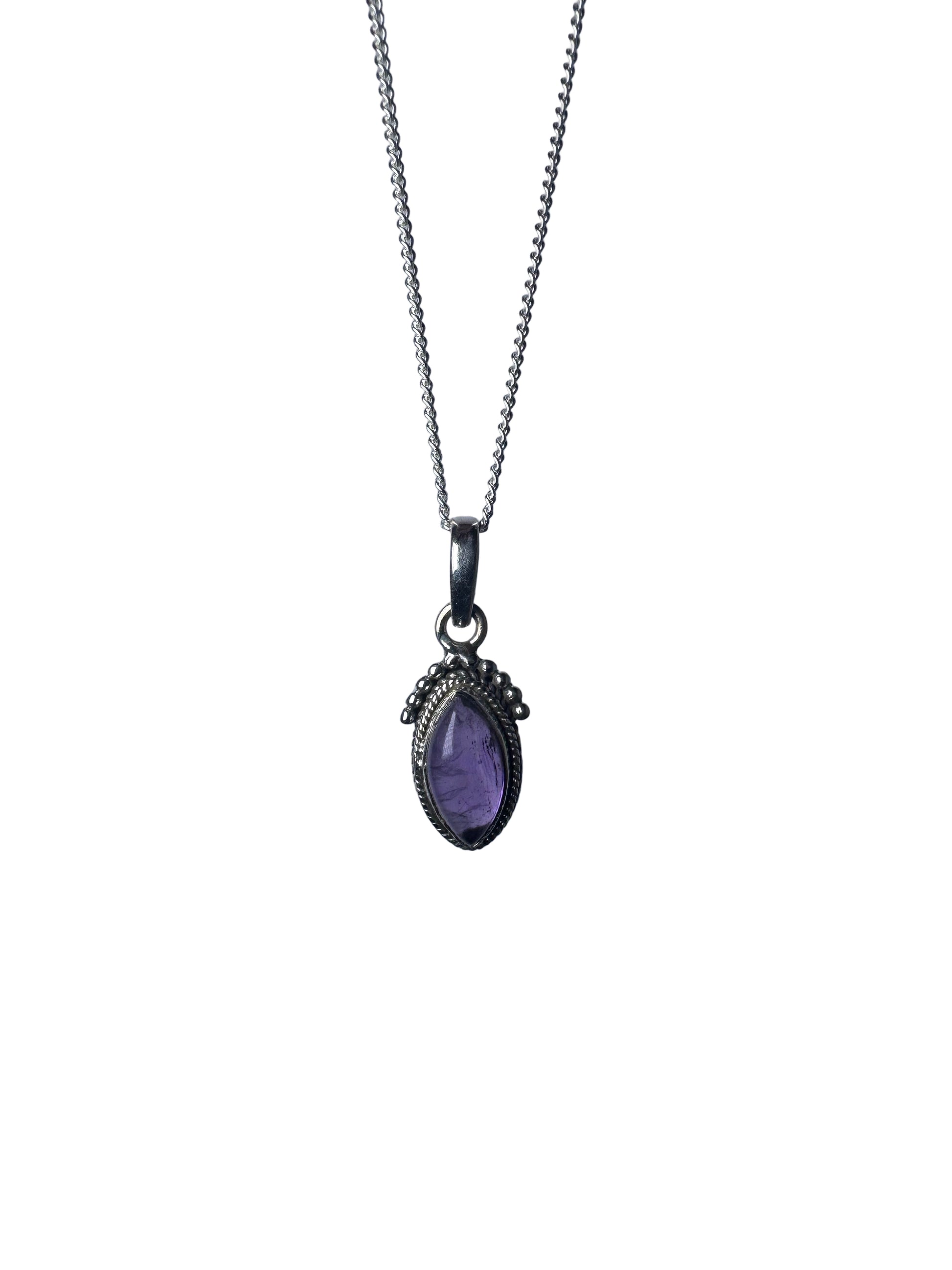 This enchanting Amethyst necklace features an elegant marquise-cut gemstone set in detailed 925 sterling silver, paired with a fine 925 sterling silver 18-inch (45 cm) chain. Its delicate craftsmanship highlights the stone’s natural lavender hue, making it a beautiful statement of calm strength and timeless grace — perfect for those seeking balance and spiritual serenity.