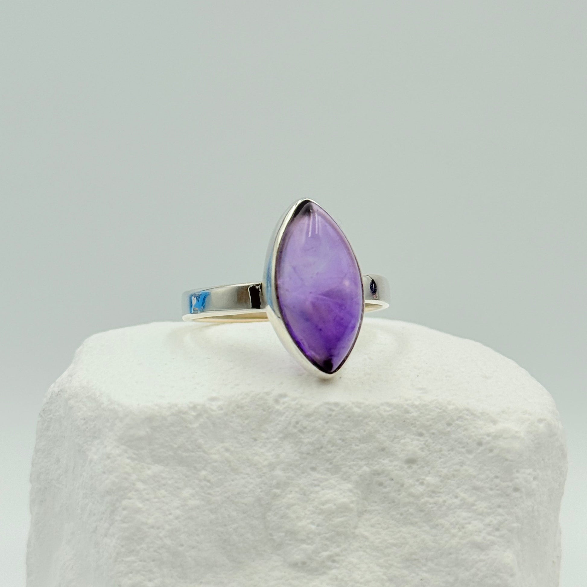 The April Ring is clarity wrapped in elegance. Featuring a marquise-cut Amethyst set in polished 925 sterling silver, April is a talisman of calm, intuition, and inner strength. She is the kind of ring that catches the light and reminds you to trust your own. A companion for the dreamer, the healer, and the one seeking peace in the midst of change.