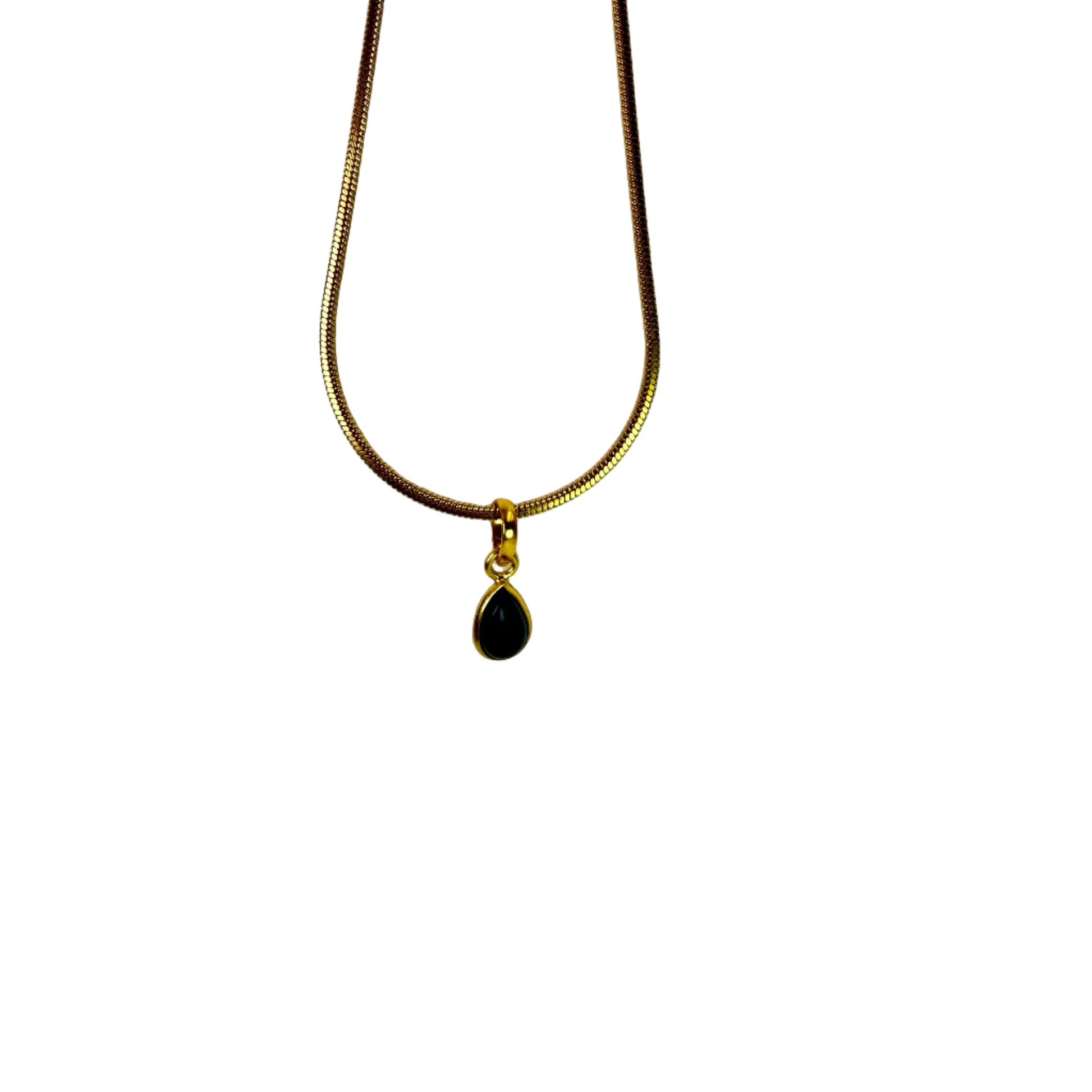 The Black Tourmaline Pendant Necklace embodies strength and protection, featuring a smooth teardrop black tourmaline gemstone set in sleek gold-toned stainless steel. Hanging from an 18-inch (45 cm) chain, this timeless piece brings grounding energy and bold style together — a perfect everyday talisman for balance and confidence.