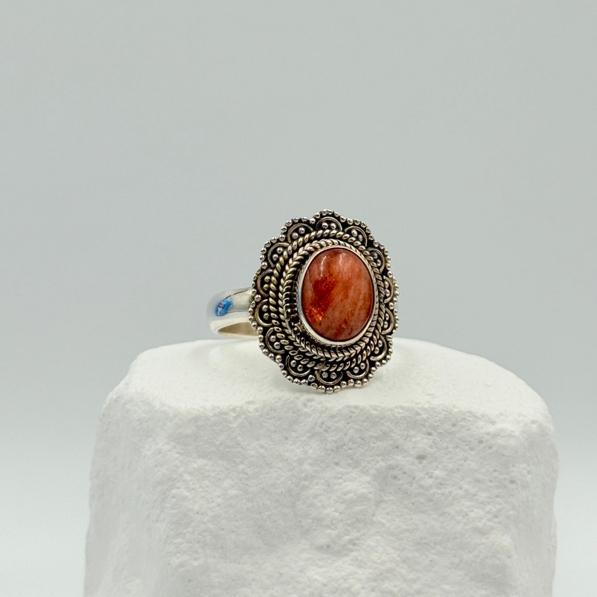 The Brioney Ring is joy captured in silver. With a glowing oval-cut Sunstone set in a detailed 925 sterling silver frame, Brioney radiates warmth, vitality, and confidence. She’s a statement piece with soul, a ring that lifts your spirit and reminds you to shine unapologetically.