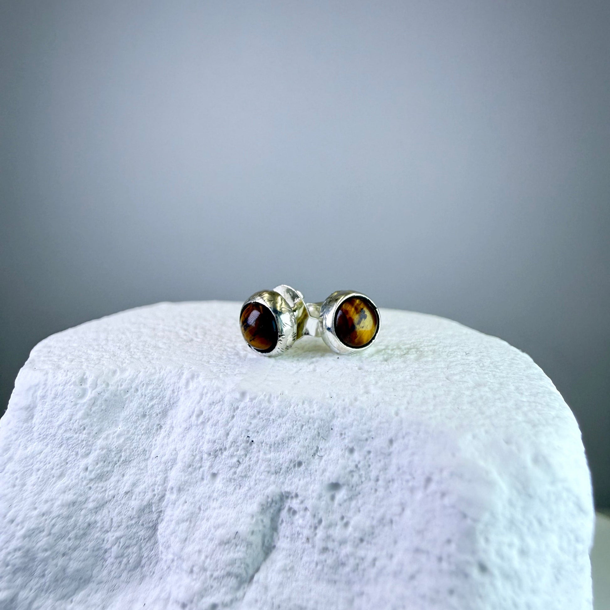 The Jess Tiger’s Eye Studs are beautifully handcrafted in 925 sterling silver, featuring polished golden-brown cabochons in a smooth bezel setting. Their rich, shimmering tones catch the light with every movement, offering a perfect balance of elegance, strength, and grounding energy.